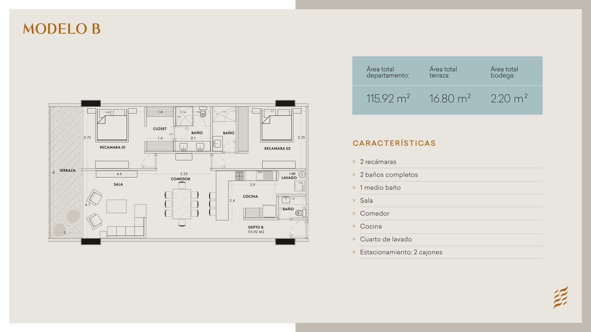 • Desarrollo vertical con 113 departamentos y 6 modelos distintos