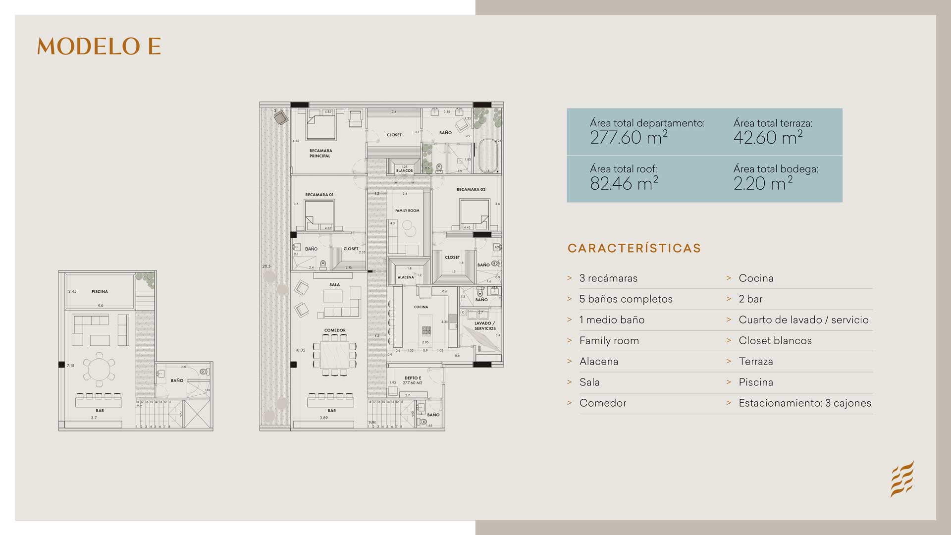 • Amenidades premium: alberca, gimnasio, lounge bar y concierge